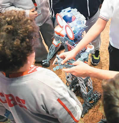 2月9日,在科威特哈瓦利省举行的机器人和人工智能节上,孩子们与现场的机器人互动。 哈 齐摄(新华社发)