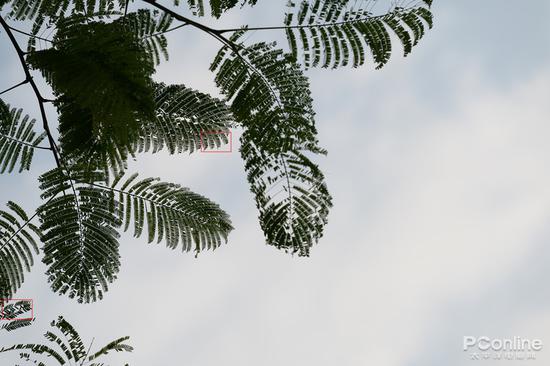 尼克尔Z70-200mmf/2.8VRS的镜片组堪称豪华,多达18组21片,还有最新科技蓝光高折射SR镜片加持,在色散测试下看看尼康最高光学技术表现如何,挑战最苛刻的测试环境,在树叶和天空高对比的状态下截取树叶边缘观察。