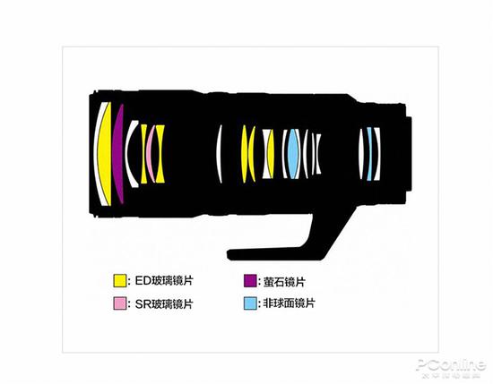 镜头内部由18组21片镜片组成,豪华配置,疯狂堆料,其中包括6枚低色散ED镜片,2枚非球面镜片,1枚萤石镜片和1枚蓝光高折射SR镜片。这枚新研发的蓝光高折射SR镜片,可以处理以往比较难处理的短波长光线,实现高精度的色差补偿,简单点来说让画面更锐利。