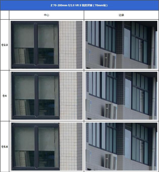 先来看看大家最关心的锐度评测。测试办法是用70mm端和200mm端分别使用逐级不同档位光圈拍摄,取中心和边缘的100%截图观察对比。