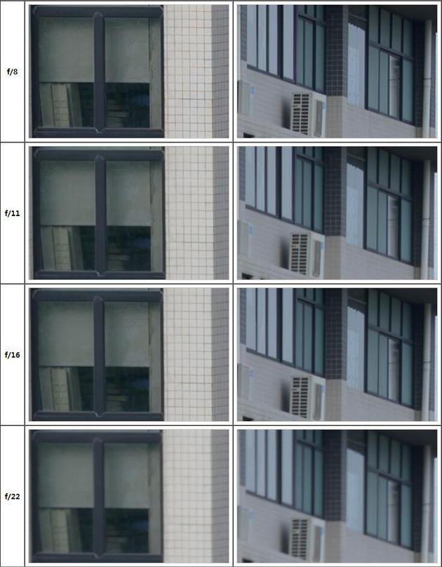 光圈从f/2.8-f/22逐档变化的实拍过程中,眩光只有画面上方的一点,随着光圈收窄只稍稍明显,在这个比较暗的测试环境,能控制到只有这么一点点的眩光,除了遮光罩的发挥,镜片的镀膜也起到至关重要的作用,这么优秀的抗眩光表现,是真的被震惊到。接下来是两张畸变测试。