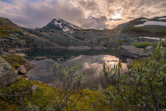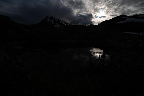 我们以Ole Henrik Skjelstad在挪威Jotunheimen拍摄的照片为例。他拍摄了太阳在云层中的一个开口,整个场景对比度很高。下图显示了当我像眼睛看到的高光一样曝光时,相机传感器如何反映整个画面。