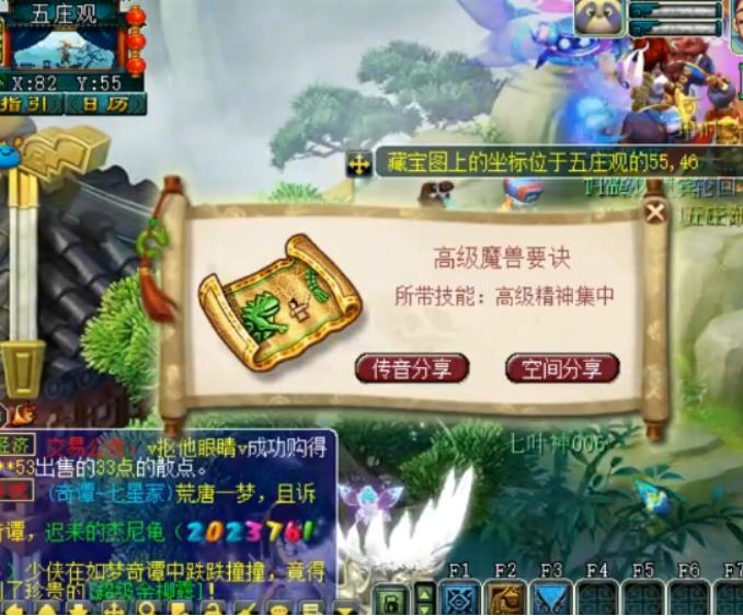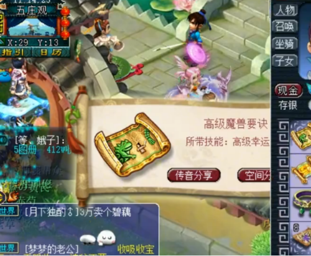 众所周知,不同地图的高级藏宝图所产出的高级兽诀是不一样的,比如:傲来国的高级连击、高级吸血;北俱芦洲的高级魔之心;建邺城的高级偷袭……等等,所以被看过坐标的高级藏宝图会根据其标注的地图不同,价格也不同。