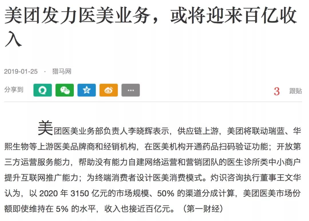 这与一些企业进入医美行业的初衷,是按照行业分成比例计算自己的利润空间,有显著的差别。
