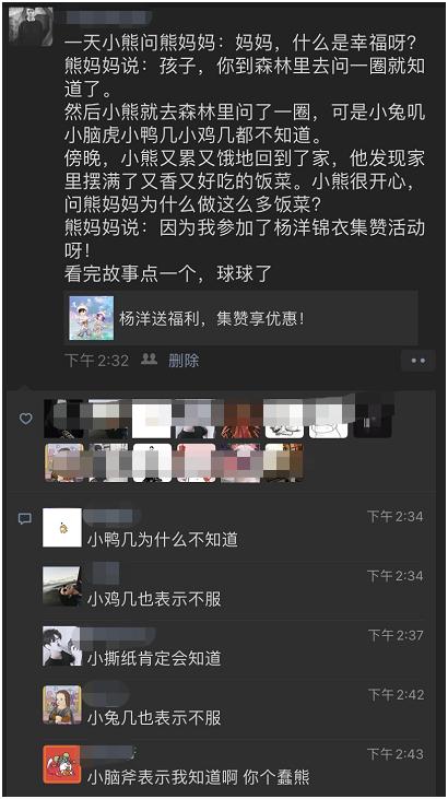 特别是在朋友圈里,几乎处处都被杨洋锦衣的段子刷屏,什么“霸道总裁为赞折腰”,“人生三大错觉之求赞”,各种冷笑话神反转层出不穷,让人笑岔气的同时,也不得不感叹,《梦幻西游》这波活动简直太牛了,把身边这些潜水的“牛鬼蛇神”全部炸出来了。