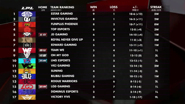 近日在LPL春季赛的赛场上,又一次出现了五杀,在IG对阵OMG的一场比赛里,IG的中单Rookie用妮蔻拿到了五杀,这也是目前LPL春季赛第五次五杀,可以说线上赛真的是相当狂野了。在排行榜上面目前新军Estar依旧是以9胜1负的战绩排名第一,他们新赛季到现在仅仅输给过EDG一次,而那个“离谱”的IG则是以8胜1负的战绩稳居第二的位置,他们的离谱表现也只输给了新军Estar一次。排名第三的则是状态最近非常好,八连胜起飞的FPX,而在近日EDG通过让一追二战胜LGD后排名上升到了第七名!