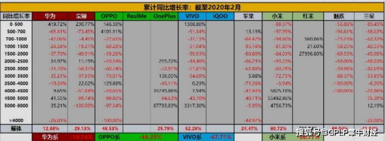 (知乎博主安乎都护府长史发布的中国手机市场2020年2月零售档位情况截图)