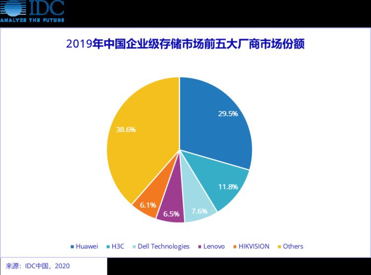 原标题:IDC:华为在2019年的企业级存储市场出货份额排名第一