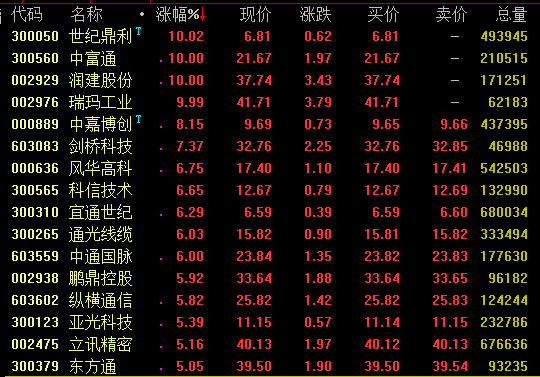 5G概念4月1日盘中走势活跃,截至发稿,世纪鼎利、中富通、润建股份、瑞玛工业等涨停,中嘉博创涨逾8%,剑桥科技、风华高科、科信技术、宜通世纪、通光线缆等涨幅超6%。