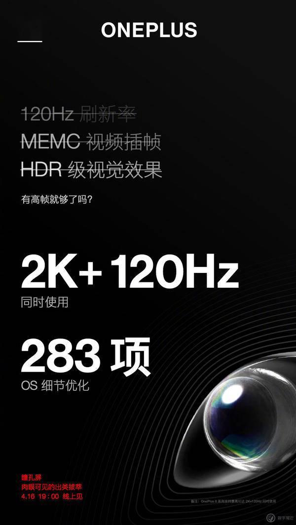 一加官方正式公布了一加 8/Pro 的屏幕参数信息和配置信息。