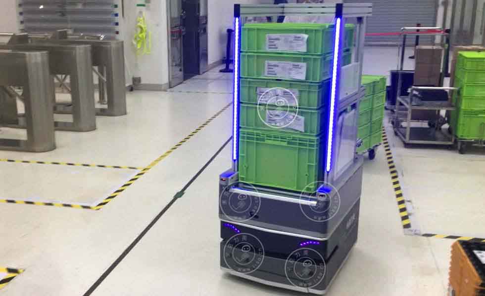 东莞某电子公司,主要生产变送器、流量计等产品,在2018年跟米克力美公司合作,实现生产内部物流的整体智能化、无人化。米克力美激光AGV小车实现了该工厂的内部原料库、备料库、制成品库的出入库,以及生产线配件的配送、在制品的流转等环节的自动化、无人化。激光AGV的应用,实现了各种产品、料架有序快速准确的运送,也使该公司在产品生产上整体效率显著提高,错误率也减少很多,工人劳动强度大幅降低,使其能够将更多的精力投入到生产工作中,同时整个生产自动化程度迈上一个新台阶。
