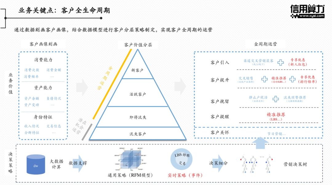 精准线上营销不仅仅是从抖音、快手等短视频广告及各类app、小程序开屏页/广告页的策略与投放。过去5年里,信用算力始终围绕服务机构的用户分层与定价策略,追寻潜在用户高黏性社交行为方式,以及可触达流量渠道的动态调整。同时,通过分析潜在用户消费数据、行为数据及其他弱相关的边缘数据,建立一个合理有效的营销响应模型,从流量端就做好对潜在用户的风险预判与价值预判,以及在投放过程中的精准定价、定向标签调整、关键词优化调整。