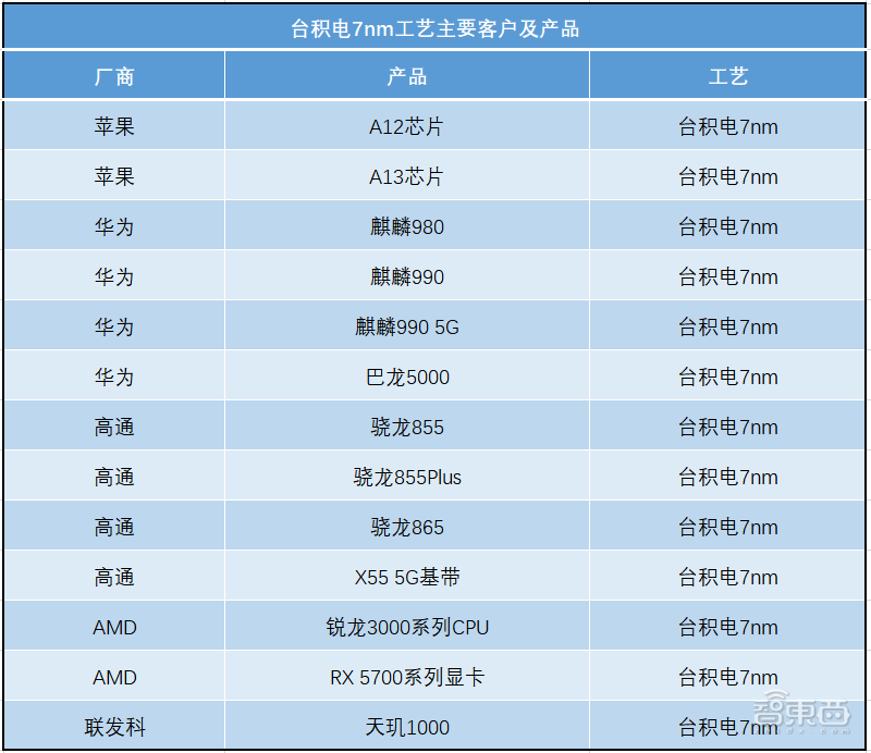 据供应链消息称,如果按照7nm订单比例,排名前五的台积电客户分别是苹果、华为、高通、AMD和联发科。