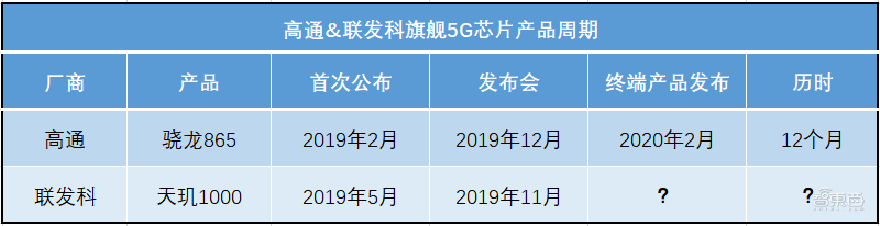 从芯片信息首次公布到终端产品落地,高通用了1年时间。如果联发科的产品节奏与高通类似,那么距离天玑1000终端产品的落地可能还剩下一个多月的时间。