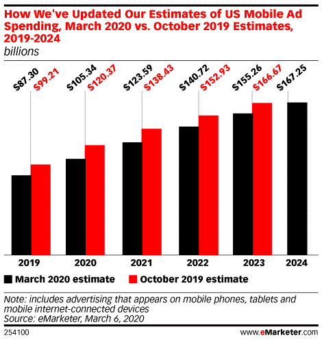 编后语:关于《eMarketer:2019年美国移动广告支出增长23.0%》关于知识就介绍到这里,希望本站内容能让您有所收获,如有疑问可跟帖留言,值班小编第一时间回复。 下一篇内容是有关《WARC:COVID-19促使1/4的消费者更愿意线上购物》,感兴趣的同学可以点击进去看看。