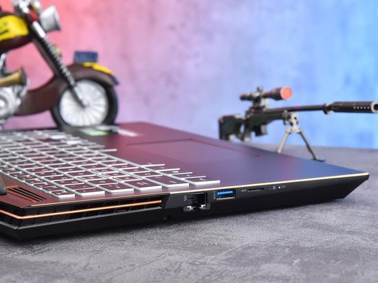 在接口方面,雷神911Pro晖金2代机身左侧配置了网口、USB 3.1 Gen 1 TYPE-A接口以及SD卡槽。而机身右侧配置了3.5mm耳麦插孔,以及2个USB 3.1 Gen 1 TYPE-A。
