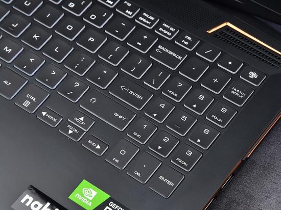 在良好的屏轴阻尼控制之下,我可以单手掀开雷神911Pro晖金2代的屏幕。随后可以看到整个C面的设计。首先,带有独立数字键区必须给个好评。如今15.6英寸产品在窄边框加持之下机身虽然更小,但却不得不损失独立数字键区带来的方便,雷神911Pro晖金2代并未因机身尺寸缩小而舍弃这一设计,给用户带来切实的便利。