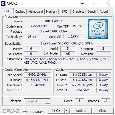英特尔酷睿i7-10750H是一颗6核12线程处理器,主频2.6GHz,单核最高睿频5GHz,标准TDP为45W,三级缓存12MB,相对于上一代酷睿i7-9750H来说,在睿频加速方面进行了升级,同时在能耗比上也有了较大幅度的提升。