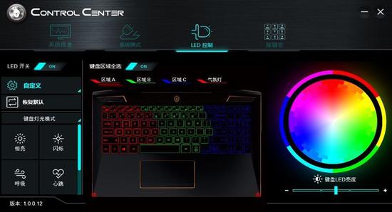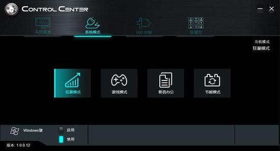 机器内置的Control Center可以对机器进行性能模式的调节,在本次测试中,我们全程开启狂暴模式,并且在散热测试环节将风扇开启高转速强冷散热模式。