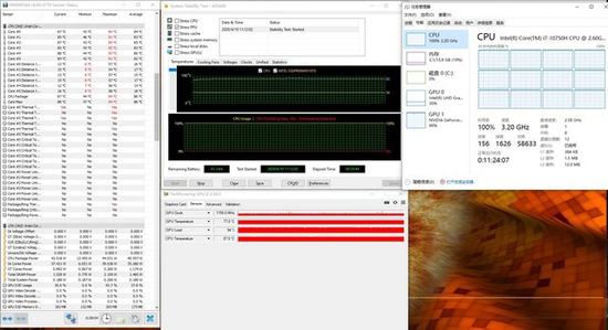 在散热测试中,我们使用AIDA 64和Furmark对其进行了双拷机测试。其处理器平均核心温度为84℃左右,显卡温度为77℃,处理器TDP稳定在40W附近,频率保持在3.2GHz附近。其中,处理器能耗比相对九代酷睿i7-9750H要明显提升,可以在低于标准功耗的情况下稳定在3.2GHz附近,这一点对于玩家有着更大的意义,可以保证游戏最低帧数更加稳定,从而使整体体验更加流畅。