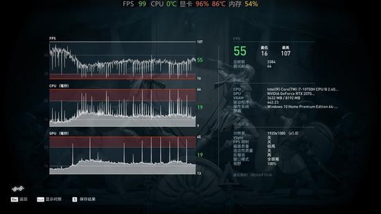 全部游戏测试都是在1920×1080分辨率下最高画质上进行的,此外我们还通过《战地5》对其光线追踪能力进行了体验,总体来说其实两个字就能够描述这款游戏本的游戏体验——流畅!