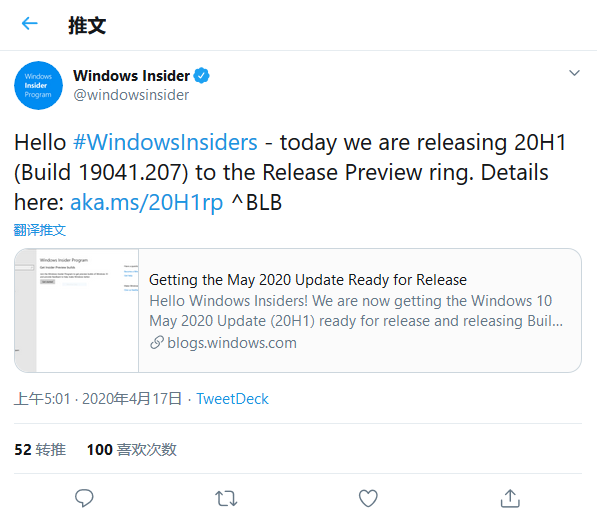 当然了,May 2020功能更新还没有完全准备好,微软计划在未来几周时间内继续打磨,邀请Release Preview通道用户进行测试,以便发现更多问题进行修复。