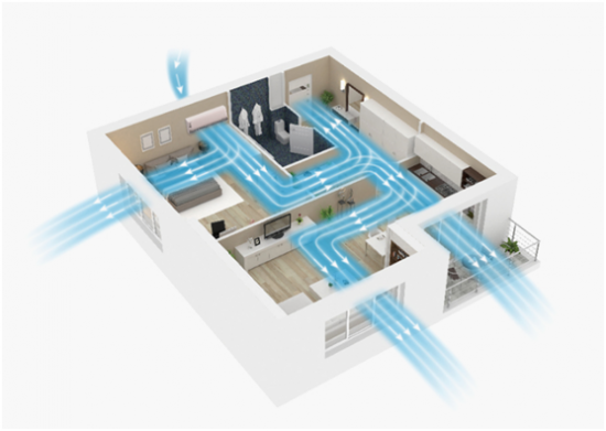 如果想要将室外的空气变得卫生健康后进入室内,现如今最好的解决办法就是安装新风系统,但新风系统适合在装修时进行安装,如果您家中暂时没有这一条件,您也可以选择具备新风功能的空调。