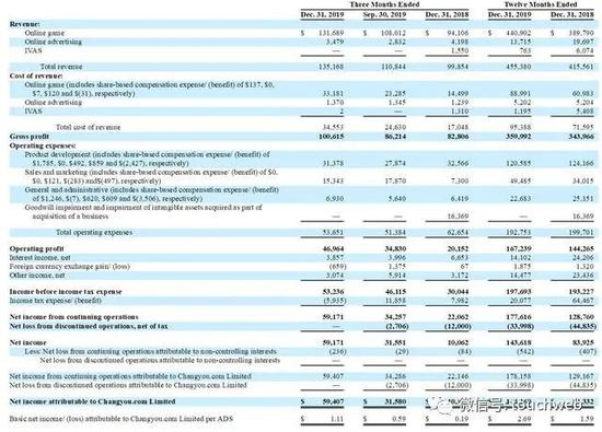 2019年第四季度美国通用会计准则下,归属于畅游公司的净利润为5900万美元,上年同期为2200万美元;2019年第四季度非美国通用会计准则下,归属于畅游公司的净利润为6300万美元,上年同期净利润为2200万美元。