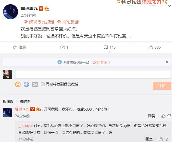 李九赛后也表示:我觉得还是把狗哥拿回来好点,别的不好说,轮换不平静,但是今天打的真不叫比赛。