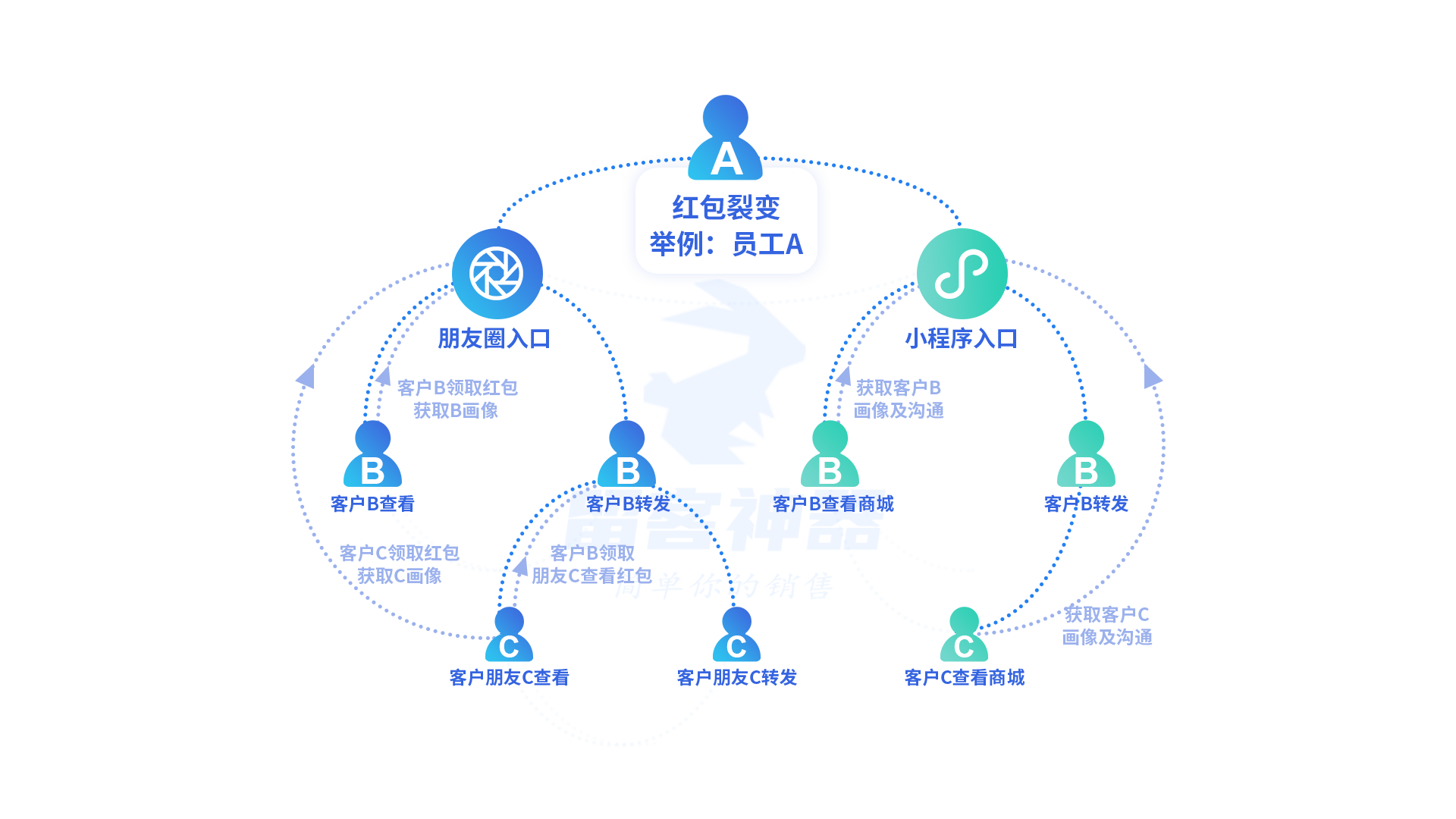客户永远归属于裂变源头的员工,并且每个客户都不会相互冲突撞单保护员工的私域客户