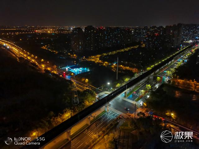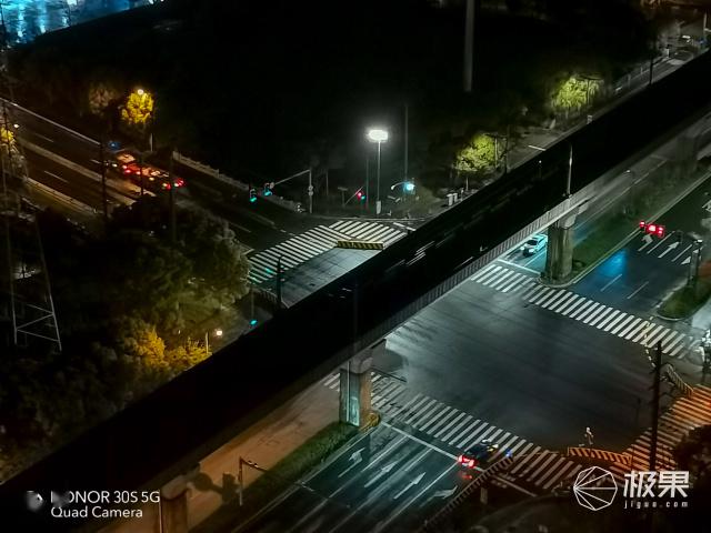 ▼夜景样片。荣耀30S的主摄像默认使用的是4合1光融合模式,将4个像素合为1个等效2.0μm超大像素,提高感光能力和照片质感,加上1/1.7英寸的大尺寸感光元件(相对于手机),夜景表现令人满意。长焦/超广角镜头也有F2.4的光圈,在稳定住手机之后,也可以获得不错的夜景表现。