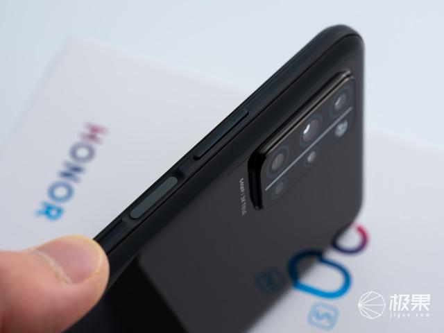 ▼右侧的音量键和指纹开关一体键。据发布会上介绍,这个指纹开关一体键的宽度达到业界最窄行列。个人使用下来,解锁速度非常迅速方便。加之在侧边的设计,基本上每次在拿起手机时,食指或拇指触摸到凹槽里的指纹开关,拿到面前就已经解锁。特别是现在属于外出都要戴口罩的常态,有这样便捷的指纹解锁实在要方便不少。相信很多用只有面部解锁手机的同学深有体会。