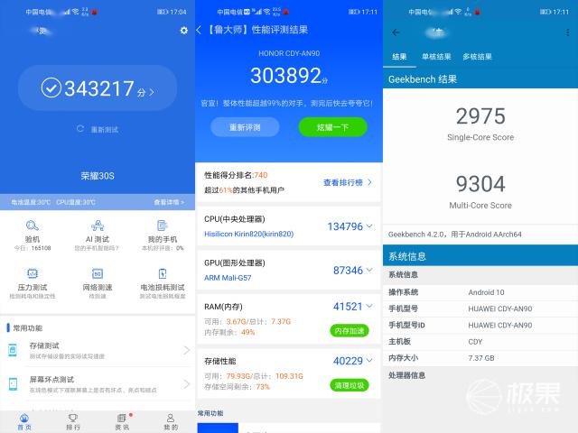 荣耀30S除了拥有不错外观设计,作为系列首款使用麒麟820 5G SoC芯片的机型,其内在的强大也不容忽视。