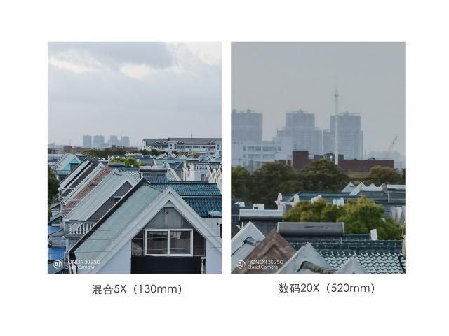 ▼再看到混合数码变焦的5倍(等效130mm)和20倍(等效520mm),可以看到经过AI系统处理的5倍混合变焦,仍然具有很高的可用性。而到了20倍的时候,画面也开始变得略微模糊,毕竟是算法数码放大的20倍,应急一用也是可以的。