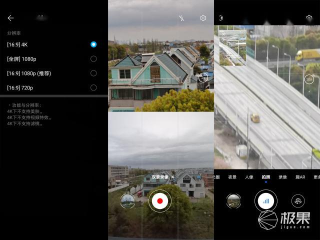 ▼视频拍摄方面,支持最高4K/30p的规格,960FPS慢动作。也支持双摄录象,把2个不同焦段的摄像头录像拼合在一起。另外混合变焦到20倍时,还会出现画中画,显示放大区域所在位置,较为人性化。