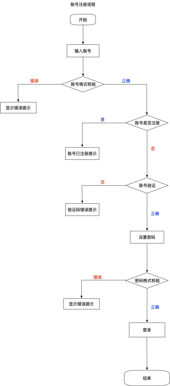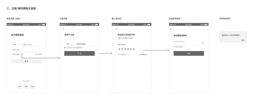 注册主流程就是输入账号>获取验证码>设置密码>完成登录,这里账号不一定是手机号,也有部分使用邮箱(特别是国外的互联网产品)。