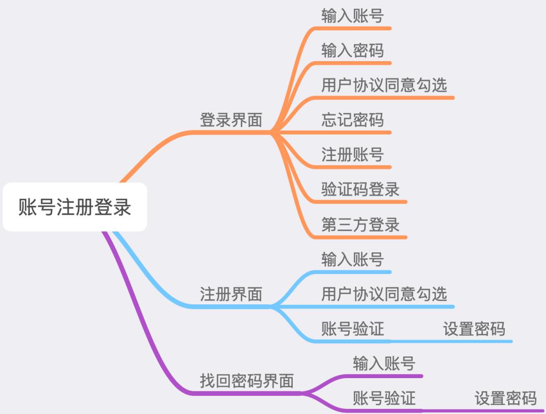 对于一个账号体系,从用户角度看,主要功能包括注册、登录、找回密码等。