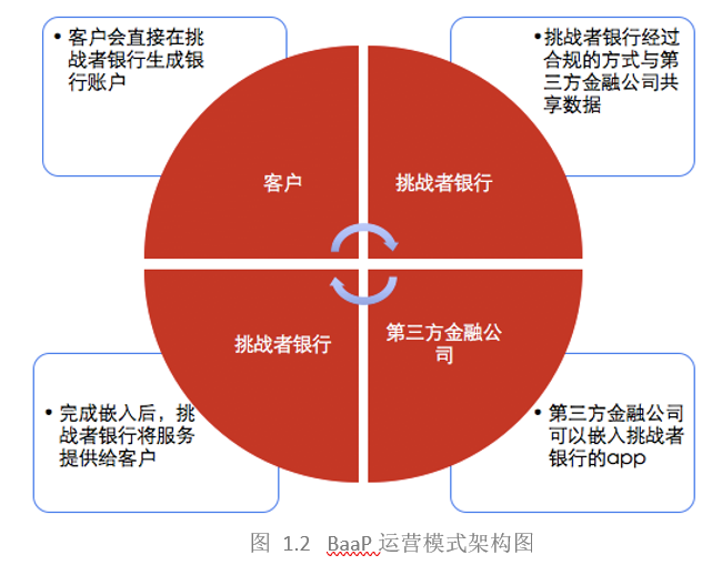 另一种运营模式是Banking-as-a-Platform(BaaP),这种模式多用于英国,因为大部分英国的挑战者银行(数字银行)都获得了英国金融行为监管局(FCA)颁发的银行牌照。虽然这些挑战者银行取得了牌照,但是它们还是想与大型金融科技公司合作,如积极寻求与财富管理公司、保险科技、贷款科技等其他金融科技公司的合作机会,为客户提供多元化的金融服务。