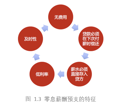 一些美国打工族每两个星期发一张支票,很多时候钱没有办法及时兑现,但又急着用钱,这时他们就只能把支票抵押给payday loan公司,以达到提前拿到现金的目的。payday loan公司会提前支付给他们一些现金,然后留下他们的支票。通常情况下,这些打工族都会损失很大一笔工资,因为payday loan公司支付给他们的现金通常仅仅是支票金额的一部分。后来,这种模式演变成纯线上的发薪日贷。