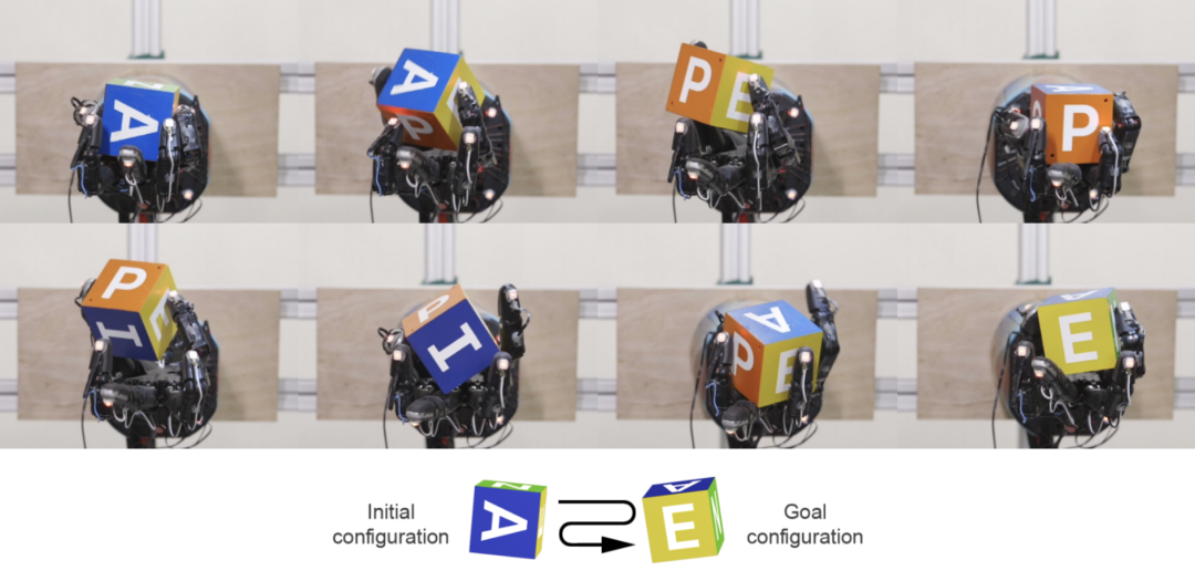 Dactyl就是我们正在谈论的机器人,它是OpenAI中一项长期的项目,始于2016年。第一个重大成果是在2018年,当时他们的机器人手学习了灵巧操作的基础知识。特别地他们学会了找到带有字母的块并将其旋转,以使目标字母面向摄像头:
