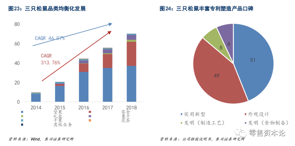 三只松鼠由主打坚果过渡到坚果、零食为主,礼盒、果干、干果多品类共同发展的格局。