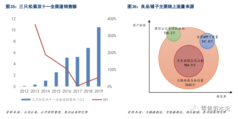自营APP 绑定会员,增强用户粘性:三只松鼠自2015 年上线自营 APP,截至2019H1,获得销售收入0.4 亿元,占线上收入0.91%,目前月流水峰值超1600万元。