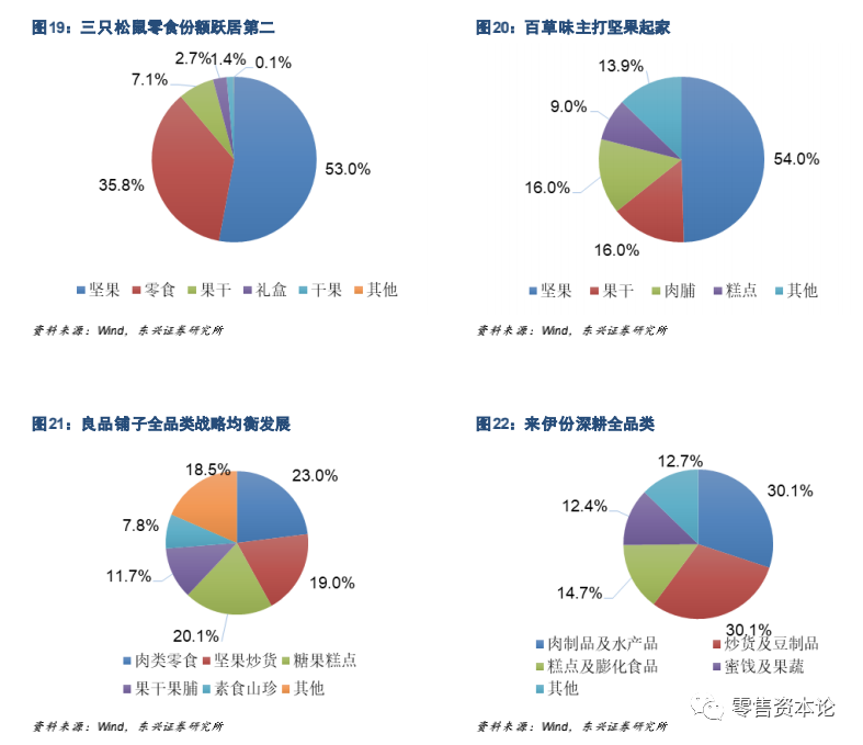 良品铺子始终推行多品类发展战略。公司以产品为核心,产品采用OEM 代工生产,企业生产运营成本压力小而依靠产品研发撬动原材料采购。