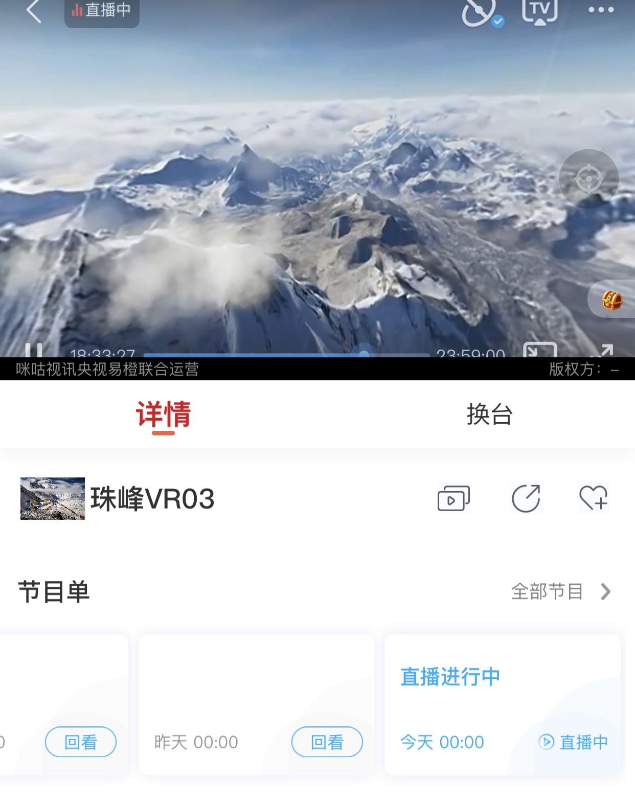 咪咕视频上可观看珠峰的“4K+VR慢直播”。 咪咕视频 截图