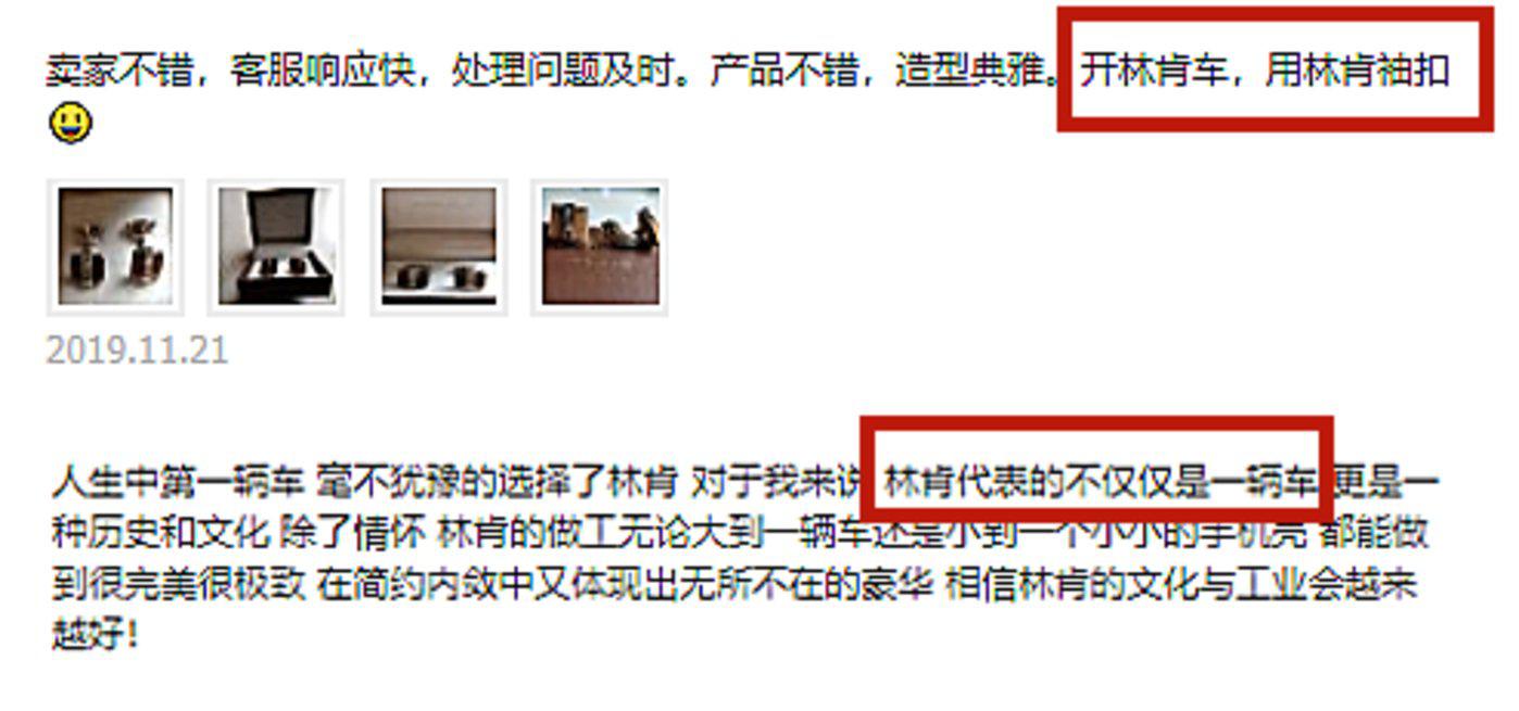 不过,翻一翻商品评价你可能就懂了:“开林肯车,用林肯袖扣”“林肯代表的不仅仅是一辆车,更是一种历史和文化”……或许只有配齐全套周边,才是开豪车的正确态度?