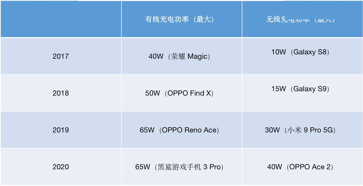 但是这一切伴随近两年越来越快的有线充电和无线充电技术发生了变化,梳理一下从 2017 年到现在手机领域充电最快速度的机器,你就能发现这其中的快速变化。