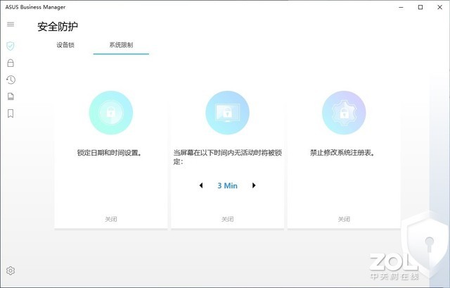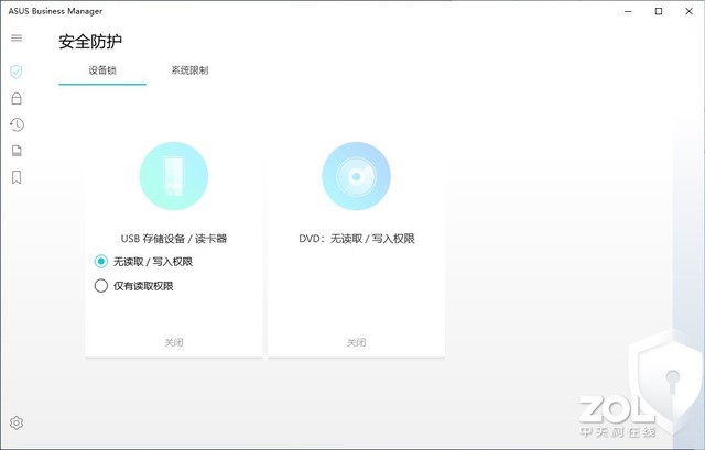 软件层面,系统内置了ASUS Business Manager,其提供了相当丰富的安全选项,包括USB存储设备/读卡器的读写权限、自动锁屏、锁定时间、锁定注册表、加密硬盘、系统回溯、文件粉碎,甚至还可以自定义开机Logo。虽然部分功能确实可以通过第三方软件实现,但系统内置并集中在一块,方便用户操作,省去繁琐的下载、设置过程。