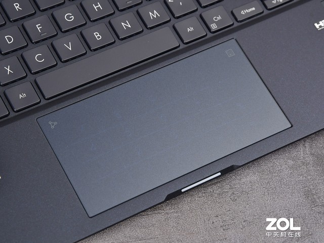 先说简单的部分。这块触控板面积较大,主要是横向较长。表面有玻璃材质覆盖,呈现细腻的磨砂感。触感非常顺滑,指针跟手,支持多指手势操作,体验没有槽点。