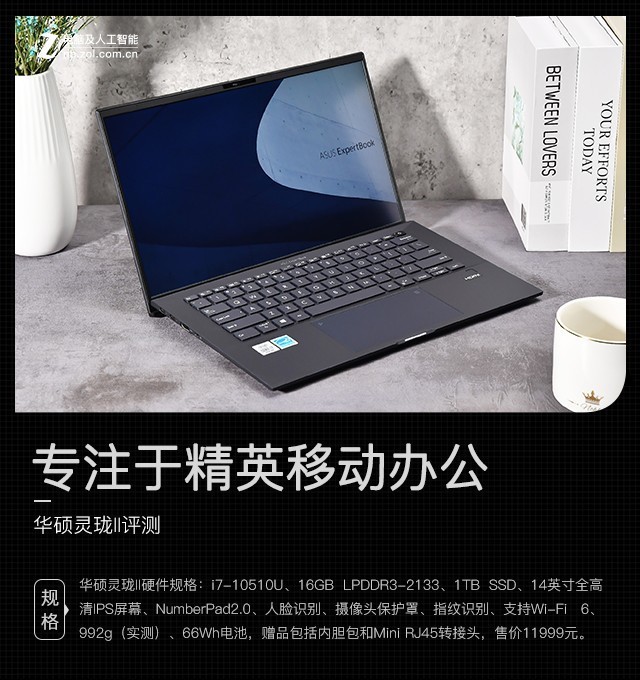 参与测试的华硕灵珑II硬件规格为:i7-10510U、16GB LPDDR3-2133、1TB PCIe3.0 ×4 SSD、核芯显卡、14英寸全高清IPS屏幕、NumberPad2.0、人脸识别、摄像头保护罩、指纹识别、支持Wi-Fi 6、992g(实测)、66Wh电池,赠品包括内胆包和Mini RJ45转接头,售价11999元。