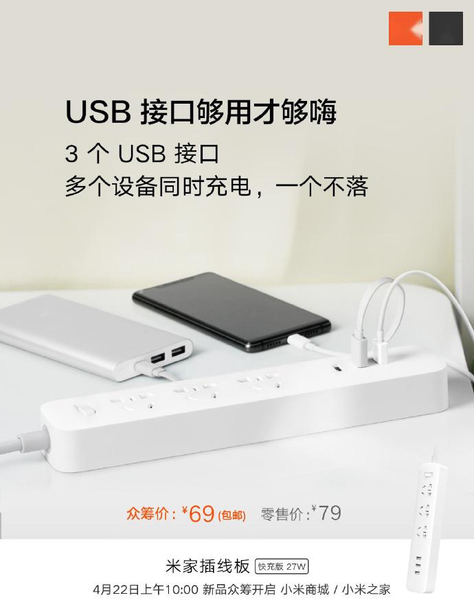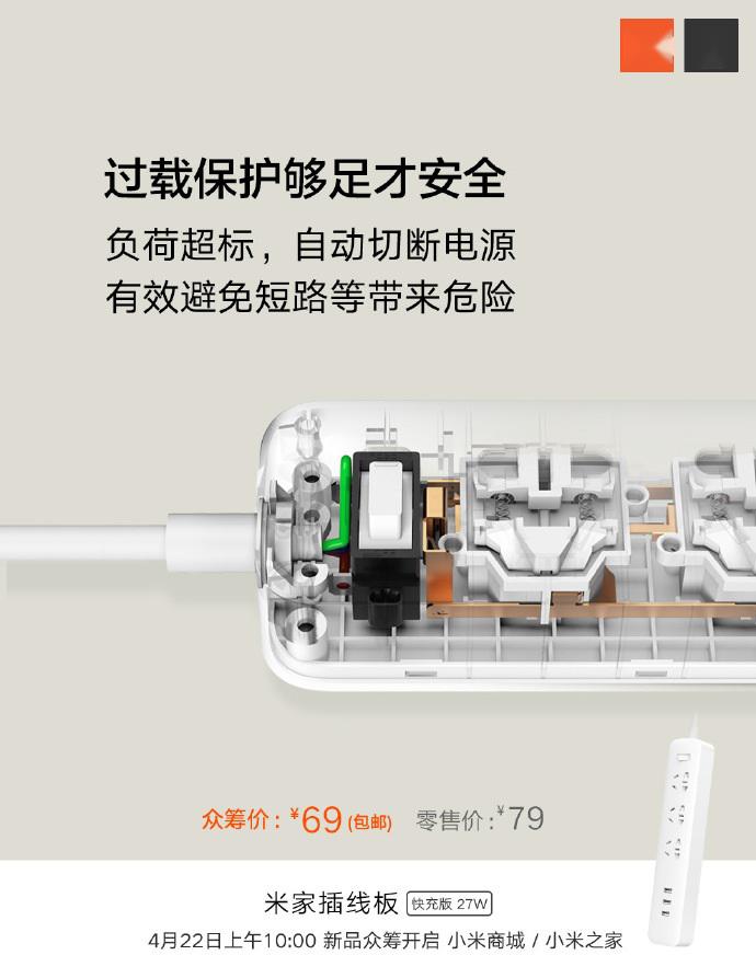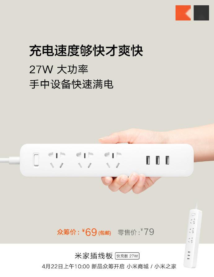 原标题:小米米家插线板快充版27W上架众筹:售价79元